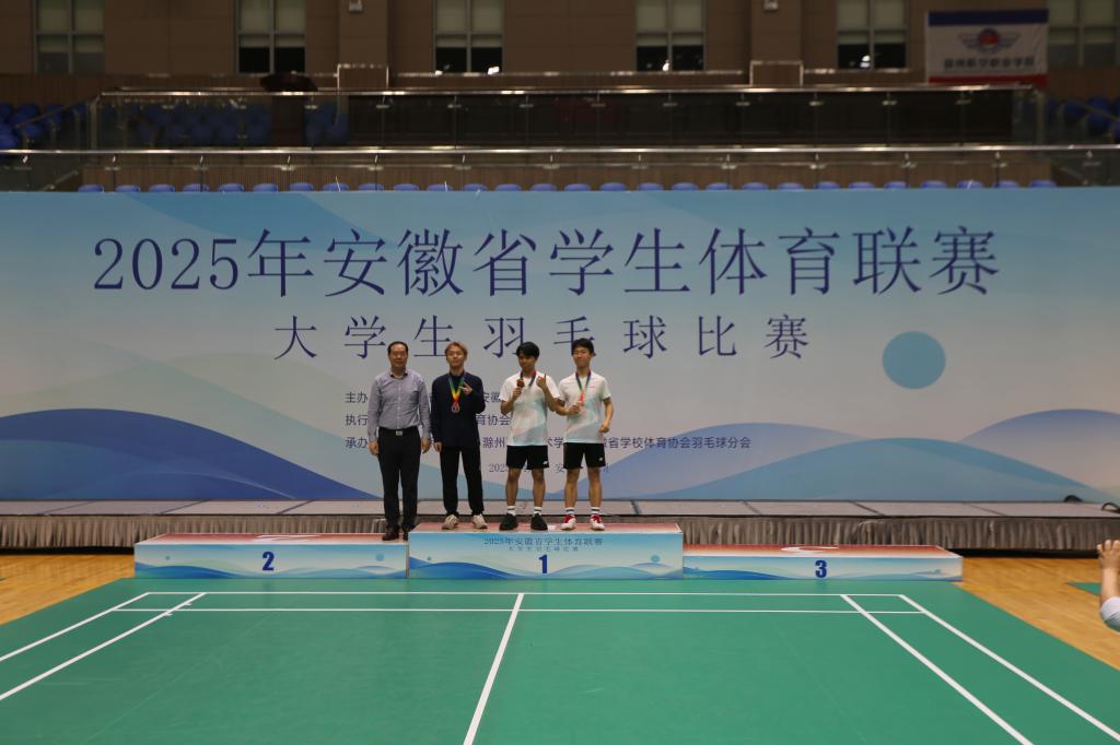 本次比赛由安徽省教育厅、安徽省体育局联合主办,吸引了全省83所高校的626名运动员参赛。在甲组男子单打项目中,姚肖同学以精湛的技术和顽强的斗志,先后击败多位强劲对手,决赛面对上届亚军中国科学技术大学肖子睿,以21:19、21:18直落两局取胜,展现了我校学子卓越的竞技水平和拼搏精神。